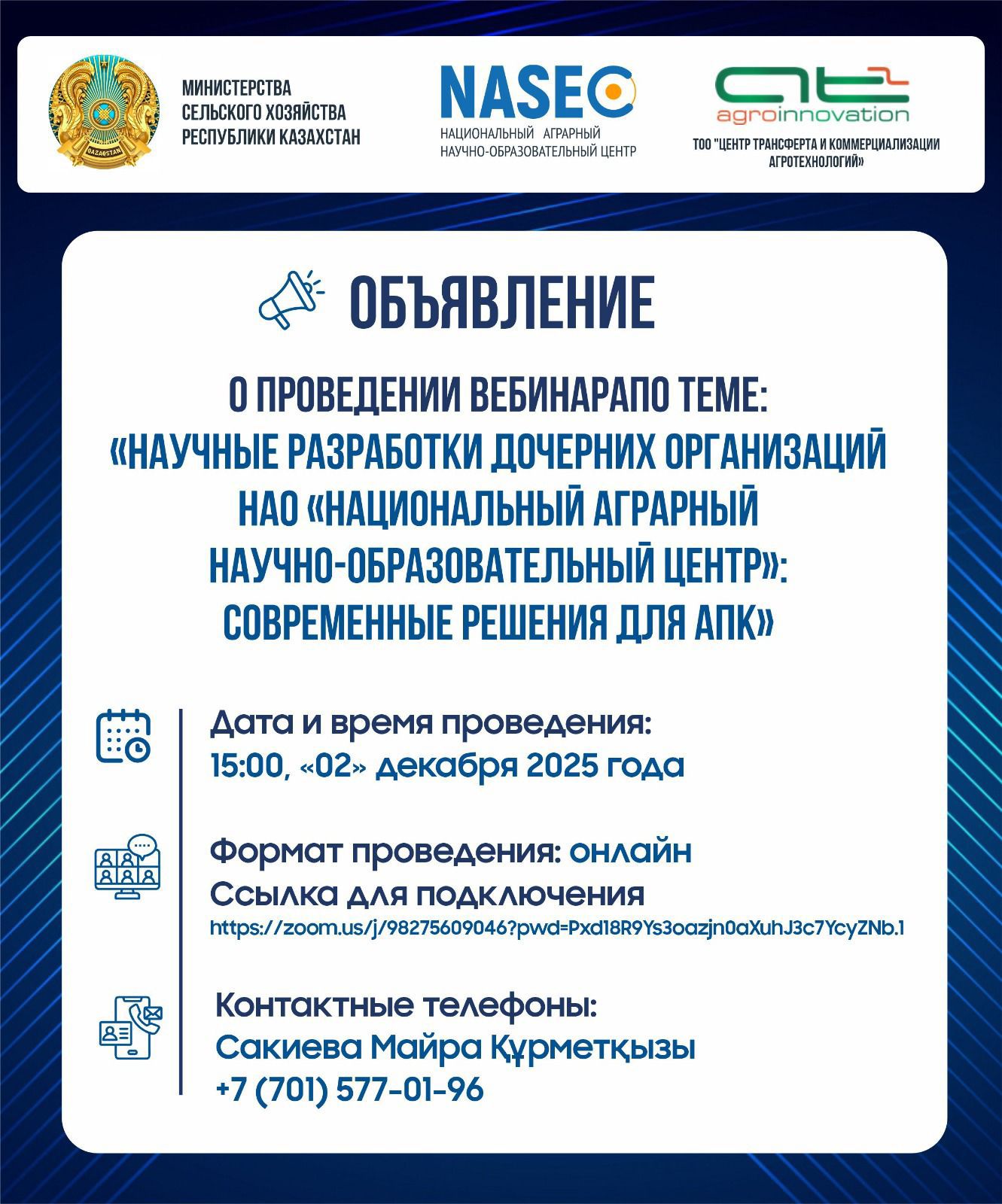 ПО ТЕМЕ: «Научные разработки дочерних организаций НАО «Национальный аграрный